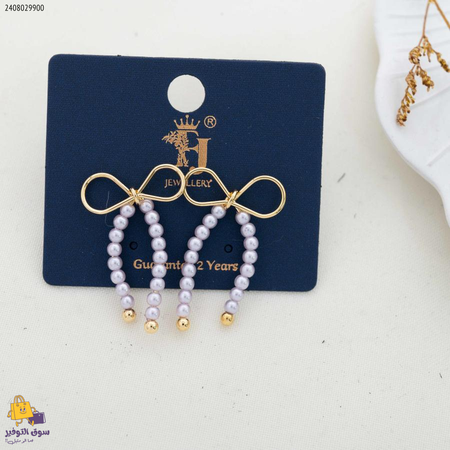 حلق شكل ببيونة مع لولو (اللون: ذهبي)