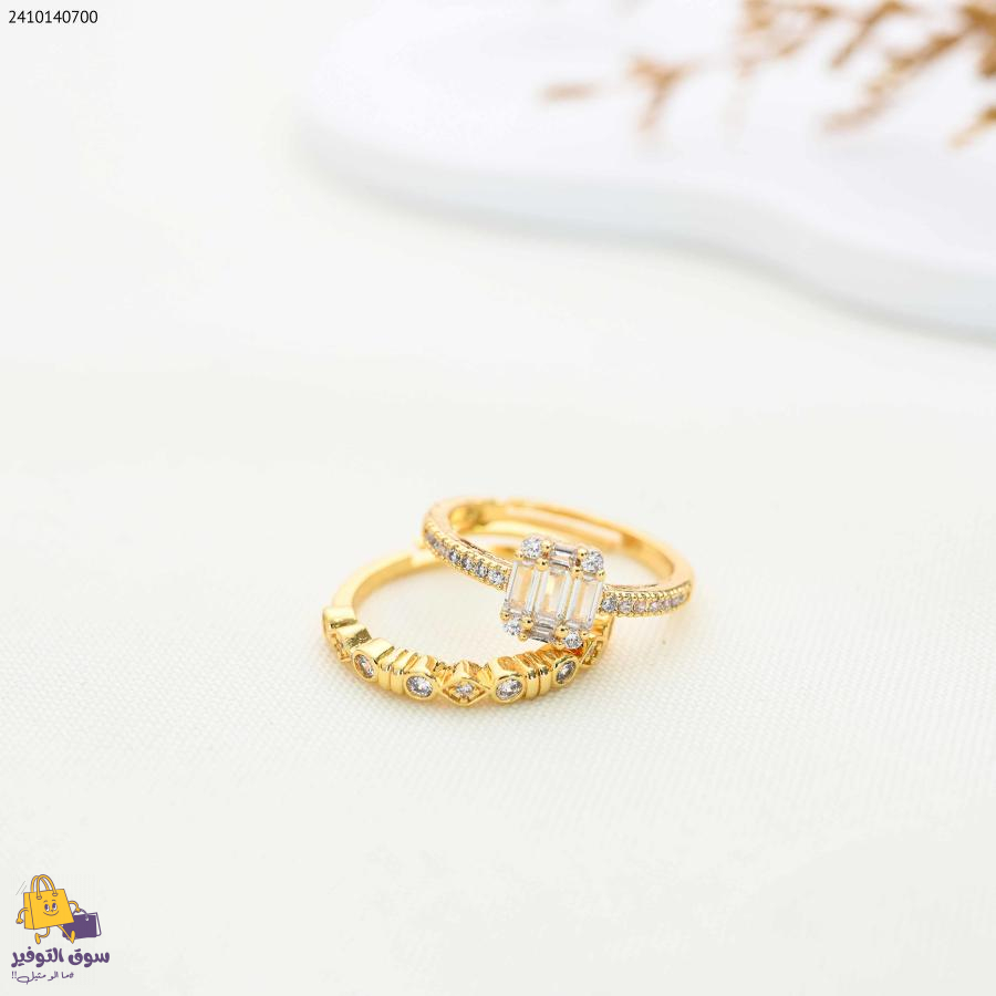 دبلة قطعتين مع حجر زركون مربع - توينز (اللون: فضي)