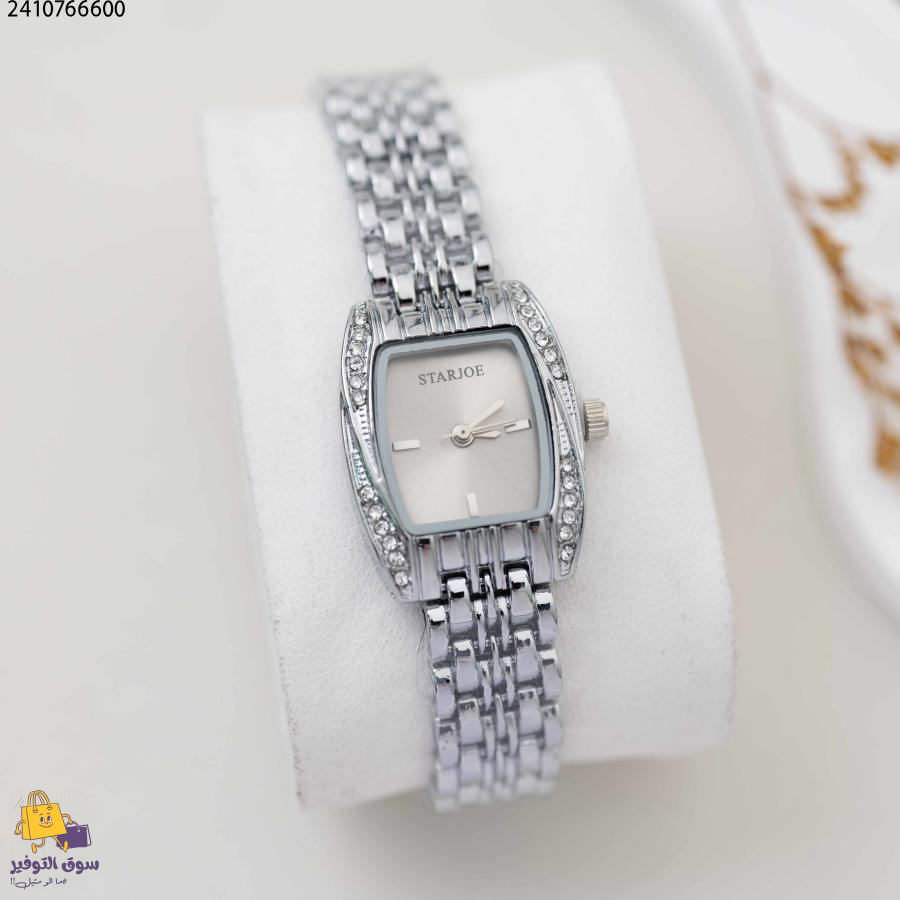 ساعة starjoe نسائية مربعة مع زركون (اللون: فضي و اسود)