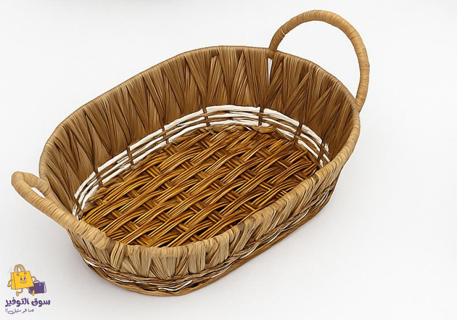 سلة قش بيضاوي بيد خيط ذهبي وسط 4-58