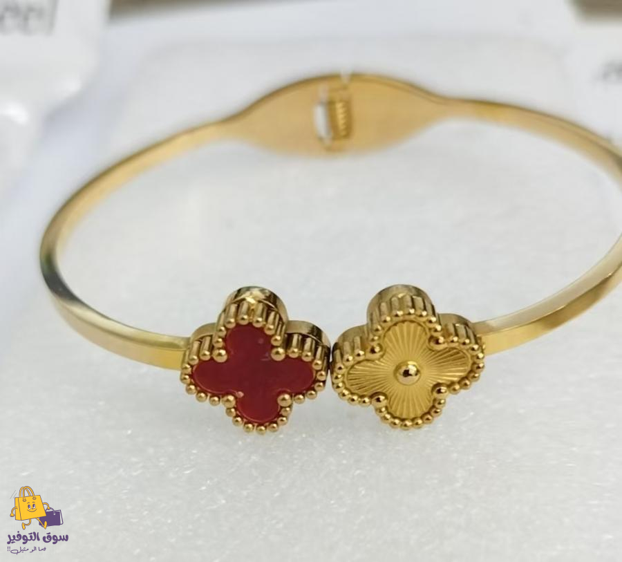 سوار بتعليقات صفيرة على شكل وردة برسيم ذهبي