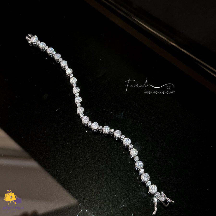 سوار تنس مرصع بفصوص الزركون المربعه فضي