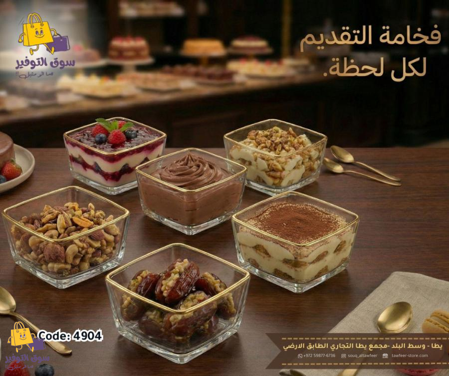 طقم صحون مكسرات /6 زجاج منقش حز ذهبي OCT-W158535ATG