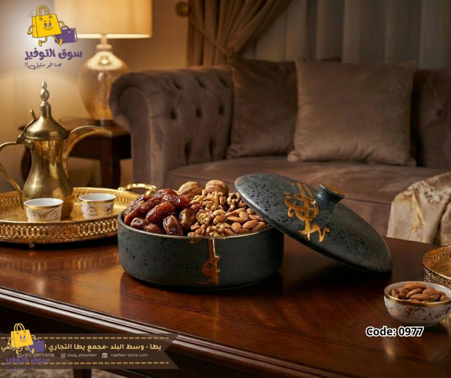 مضيفة مدور بغطاء 7" بورسلان اسود منقش مذهب CAN56B-BLACK