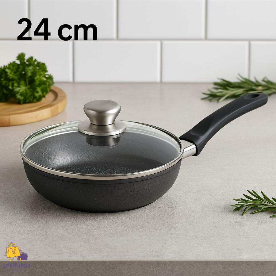 مقلى جرانيت ثقيل مع غطاء 24 سم