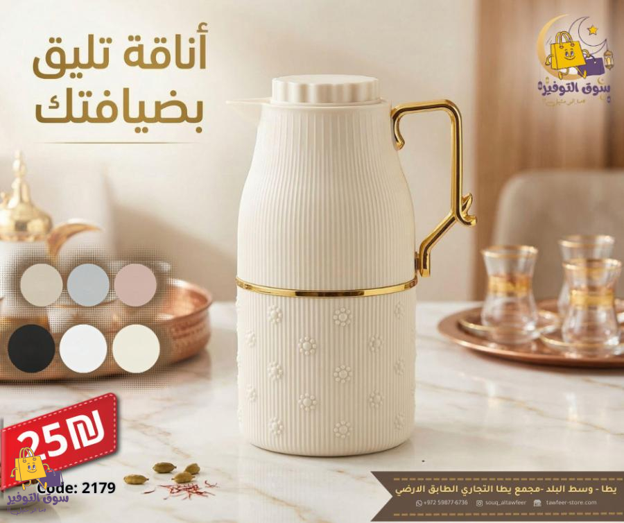 دلة تيرموس 1.0 لتر ملون مذهب منقش DW-1016
