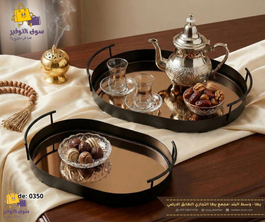 طقم صواني ضيافة بيضوي /2 معدن اسود وجه مرآه عسلي 53035