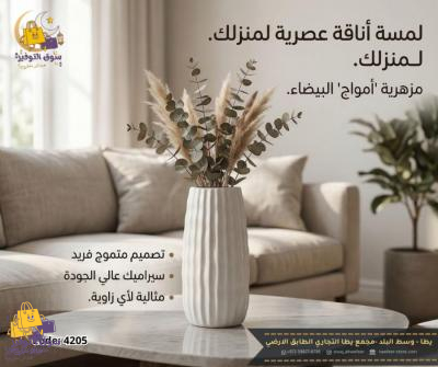 مزهرية بورسلان ابيض حلزوني كبير B50-18