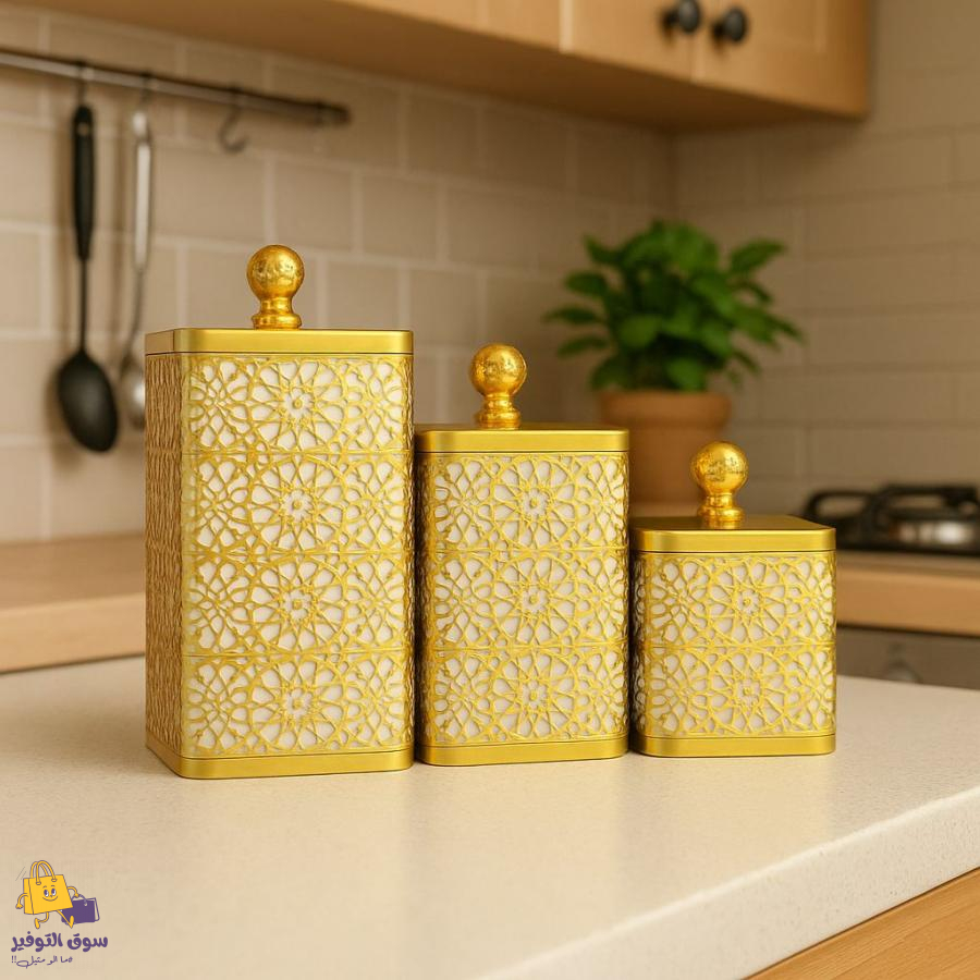 طقم علب بهارات ثلاثي فخم ابيض مذهب 2-2 الاحمد