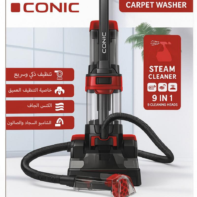 ✨ جهاز CONIC Carpet Washer FCW-211 ✨ودّع تعب تنظيف السجاد والكنب 🚫🧹 مع الغسالة البخارية الذكية من CONIC.✔️ تنظيف عميق يوصل لأدق الأوساخ✔️ قوة بخار تقتل الجراثيم وتخلي بيتك أمان✔️ مناسب للسجاد، الكنب، الستائر وحتى مقاعد السيارة✔️ خزان عملي وسهل التعبئة + تجفيف سريع✔️ تصميم أنيق وسهل الاستخدام